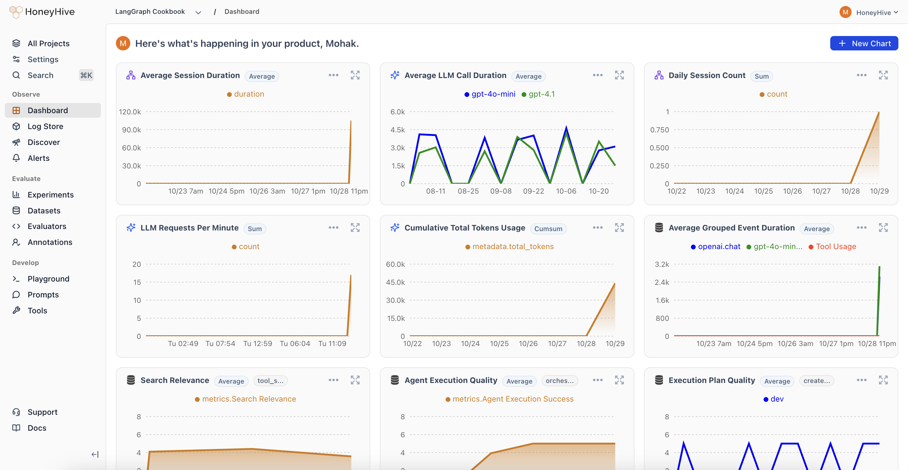 HoneyHive aggregates all your production data—traces, evaluations, and user feedback—in one place. This unified view lets you:- Detect Failures: Catch anomalies across your cost, usage, and quality metrics.